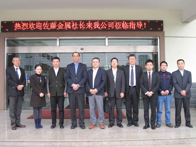 3月22日下午,佐藤金属株式会社社长和高层领导来访我公司,在公司董事长章建松和品技部经理汤烈荣等公司领导的陪同下,对我公司进行了实地考察,考察了我公司的生产流程,生产能力,生产车间等,并对我公司的综合实力做出高度评价。